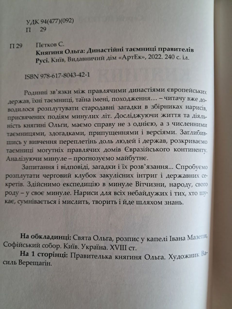 Родинні звязки між правлячими династіями європейських держав, їхні таємниці, тайна імені, походження… – читачу вже доводилося розплутувати стародавні загадки в збірниках нарисів, присвячених подіям минулих літ. Досліджуючи життя та діяльність княгині Ольги, ми розкриваємо таємниці могутніх правлячих домів Європейського континенту.